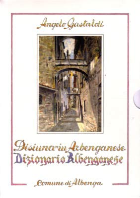 C'è voluto un quarto di secolo per mettere insieme questo "Dizionario albenganese" in due tomi di complessive 1100 pagine, che fissa per sempre la corrispondenza fra la lingua italiana e il dialetto. L'opera è arricchita di sessanta stupende tavole illustrate che riproducono ambienti, animali, fiori, attrezzi casalinghi e di lavoro del nostro territorio. Le ultime pagine sono dedicate alla pesca e ai nomi dei pesci del mar Ligure. L'autore è Angelo Gastaldi, scrittore, disegnatore,